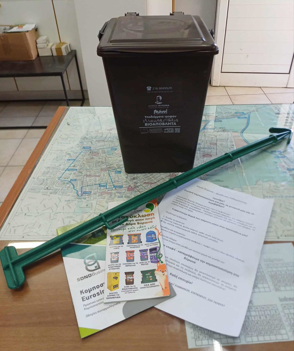 O Δήμος Βύρωνα έχει ξεκινήσει και προμηθεύει δωρεάν κομποστοποιητές σε όσους δημότες επιθυμούν να συμμετέχουν στο πρόγραμμα οικιακής κομποστοποίησης του.