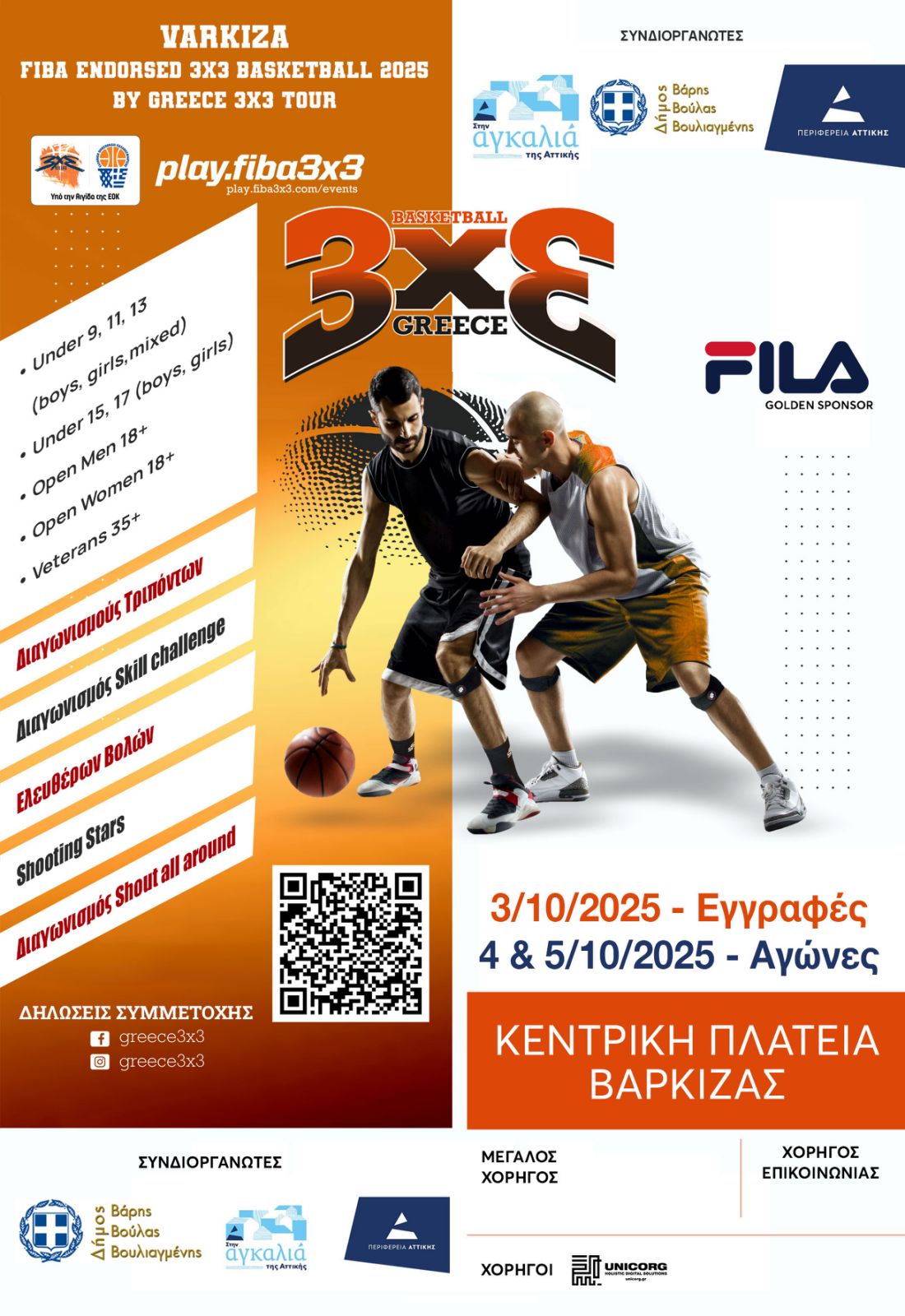 Από 3 έως 5 Οκτωβρίου 2025, η κεντρική πλατεία της πόλης φιλοξενεί για πέμπτη συνεχή χρονιά το Varkiza FIBA Endorsed 3×3 Tournament, ένα τουρνουά – θεσμό που έχει κερδίσει τη θέση του στο διεθνές καλαντάρι της FIBA.