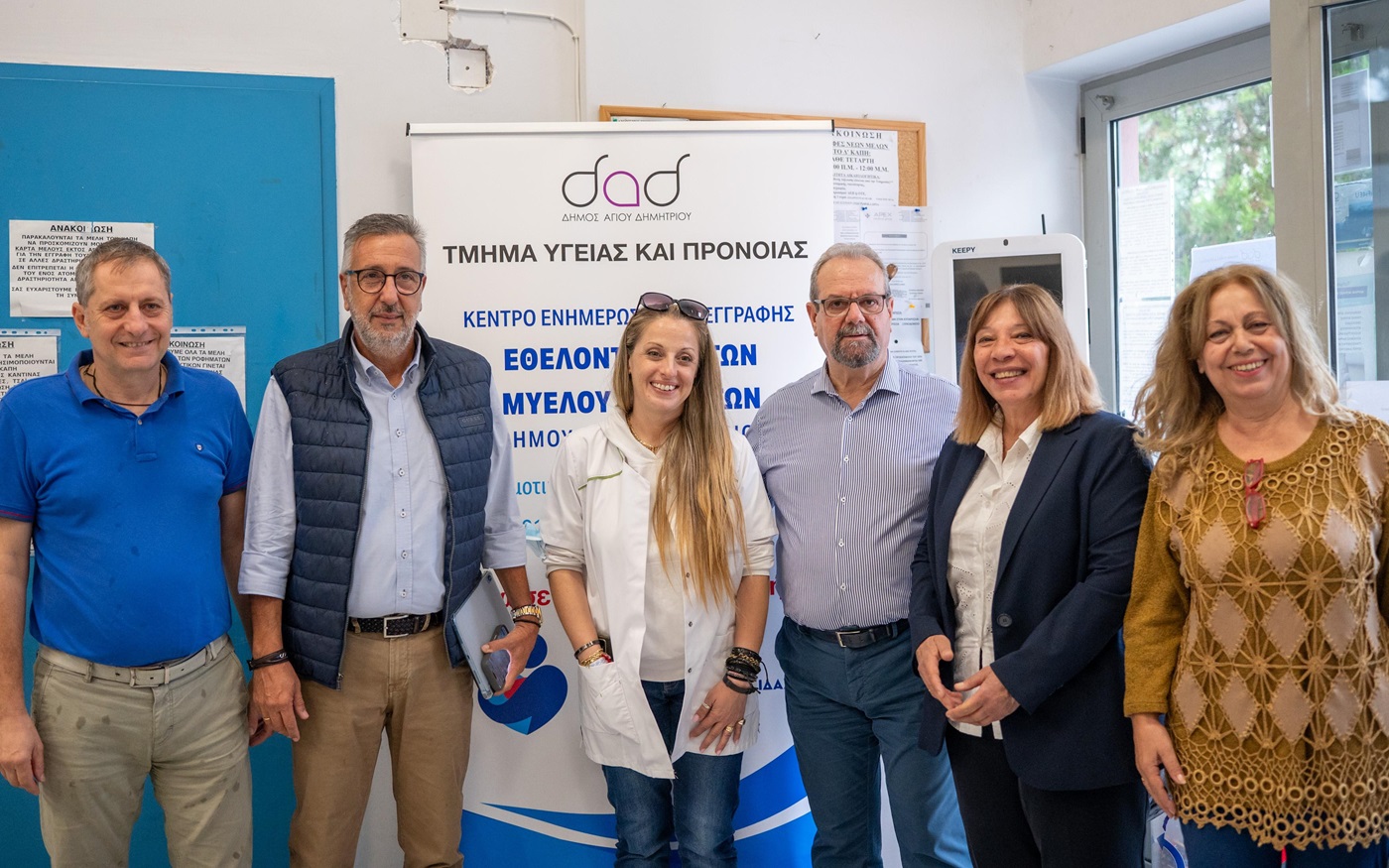 Σε μία εγκάρδια εκδήλωση εγκαινιάστηκε η λειτουργία του Κέντρου Ενημέρωσης και Εγγραφής Εθελοντών Δοτών Μυελού των Οστών του Δήμου Αγίου Δημητρίου, την Πέμπτη 2 Οκτωβρίου 2025, στο χώρο των Δημοτικών Ιατρείων επί της οδού Θεσσαλίας 10.