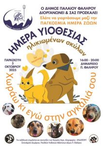 Με αφορμή την Παγκόσμια Ημέρα Ζώων, της 4ης Οκτωβρίου ο Δήμος Παλαιού Φαλήρου διοργανώνει μια ιδιαίτερα ξεχωριστή εκδήλωση αφιερωμένη στους πιο σοφούς και γλυκούς τετράποδους φίλους — τους ηλικιωμένους σκύλους που αναζητούν μια δεύτερη ευκαιρία για αγάπη και φροντίδα.