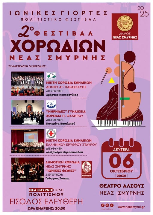 • Η Δημοτική Χορωδία Νέας Σμύρνης “Ιωνικές Φωνές” υπό την διεύθυνση του Γεώργιου Ζιάκα