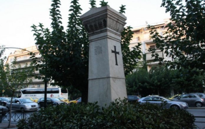 Θύμα βάρβαρης καταστροφικής συμπεριφοράς είναι και η αναθηματική στήλη, που στήθηκε πριν από έναν αιώνα στην λεωφόρο Βασιλίσσης Σοφίας των Αθηνών και στο σημείο όπου