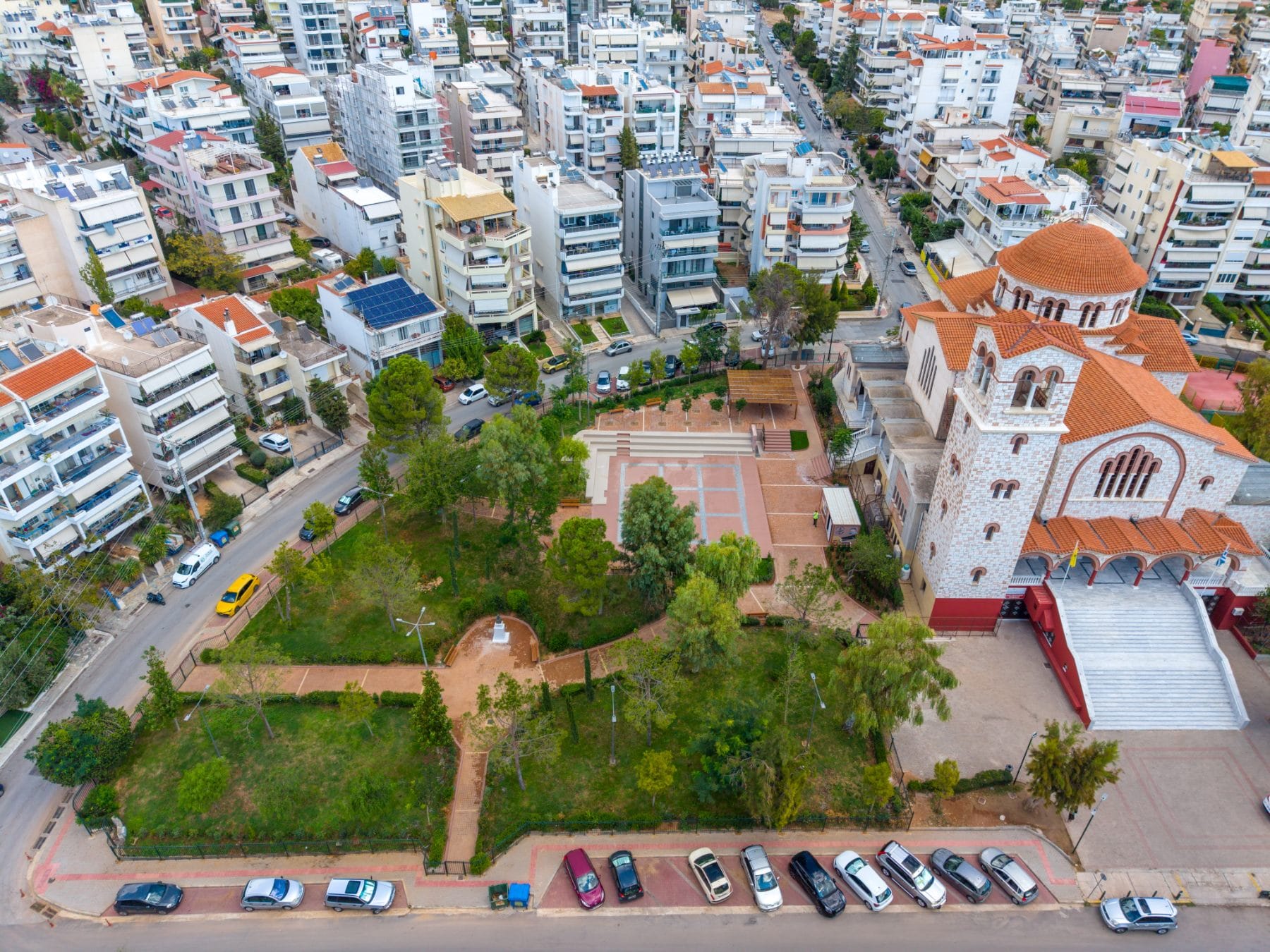 Θέλαμε και μπόλικο πράσινο, για αυτό και φυτέψαμε πολλά μεγάλα νέα δέντρα. Τοποθετήσαμε και δάπεδο με βιοκλιματικά υλικά και κάναμε και άλλες παρεμβάσεις.