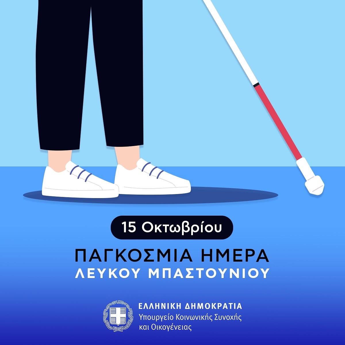 «Στις 15 Οκτωβρίου τιμούμε την Ημέρα του Λευκού Μπαστουνιού, μια ευκαιρία να σταθούμε με σεβασμό και ευαισθησία δίπλα στα άτομα με οπτική αναπηρία. Το λευκό μπαστούνι δεν είναι απλώς ένα εργαλείο — είναι το σύμβολο της ανεξαρτησίας, της ασφάλειας και της αυτονομίας των ανθρώπων που το χρησιμοποιούν.