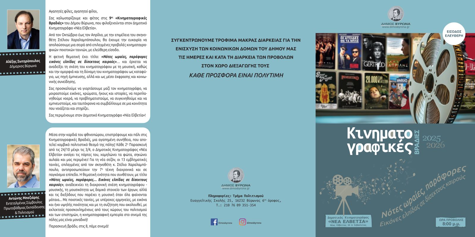 Σας καλωσορίζουμε και φέτος στις 9ες «Κινηματογραφικές Βραδιές» του Δήμου Βύρωνα, που φιλοξενούνται στον Δημοτικό Κινηματογράφο «Νέα Ελβετία».