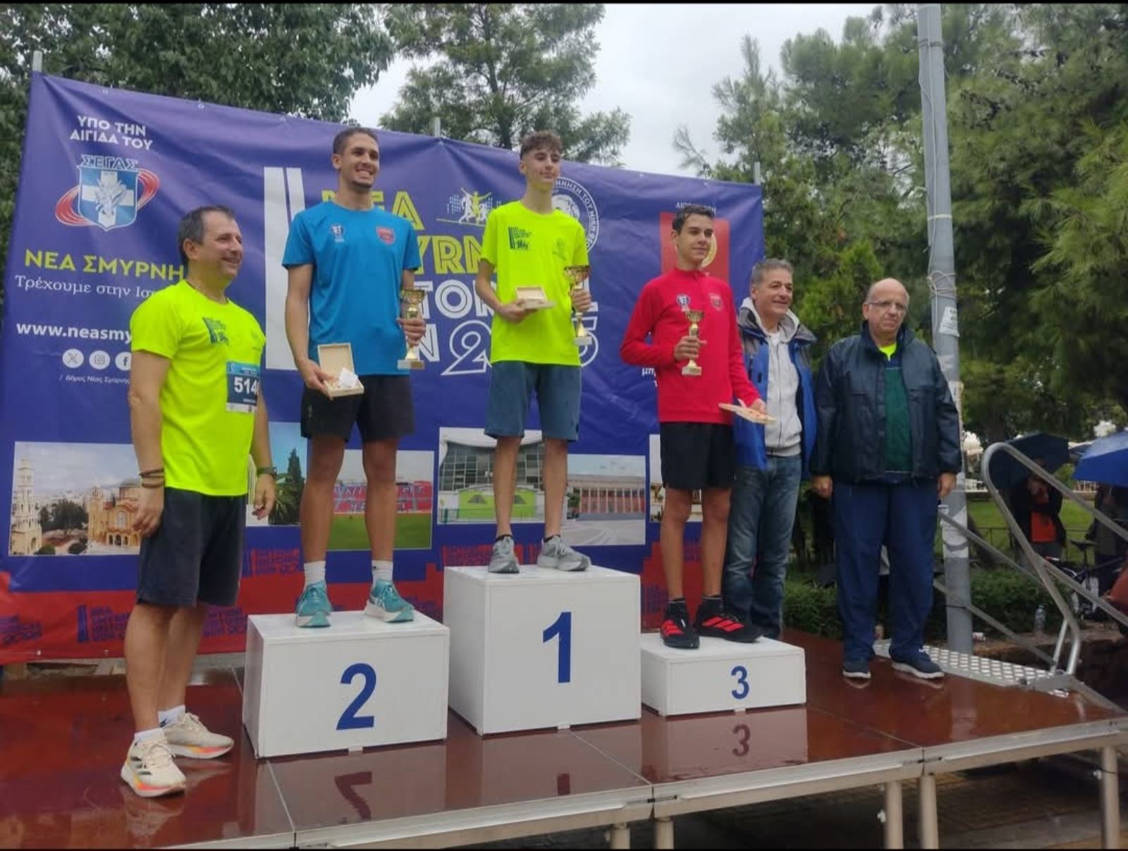 Επίσης, ο πρόεδρος του Συλλόγου Αποφοίτων της Ευαγγελικής, Αναστάσιος Τσάτσος απένειμε τα μετάλλια στους νικητές της κατηγορίας 5 χιλιόμετρα Ανδρών.