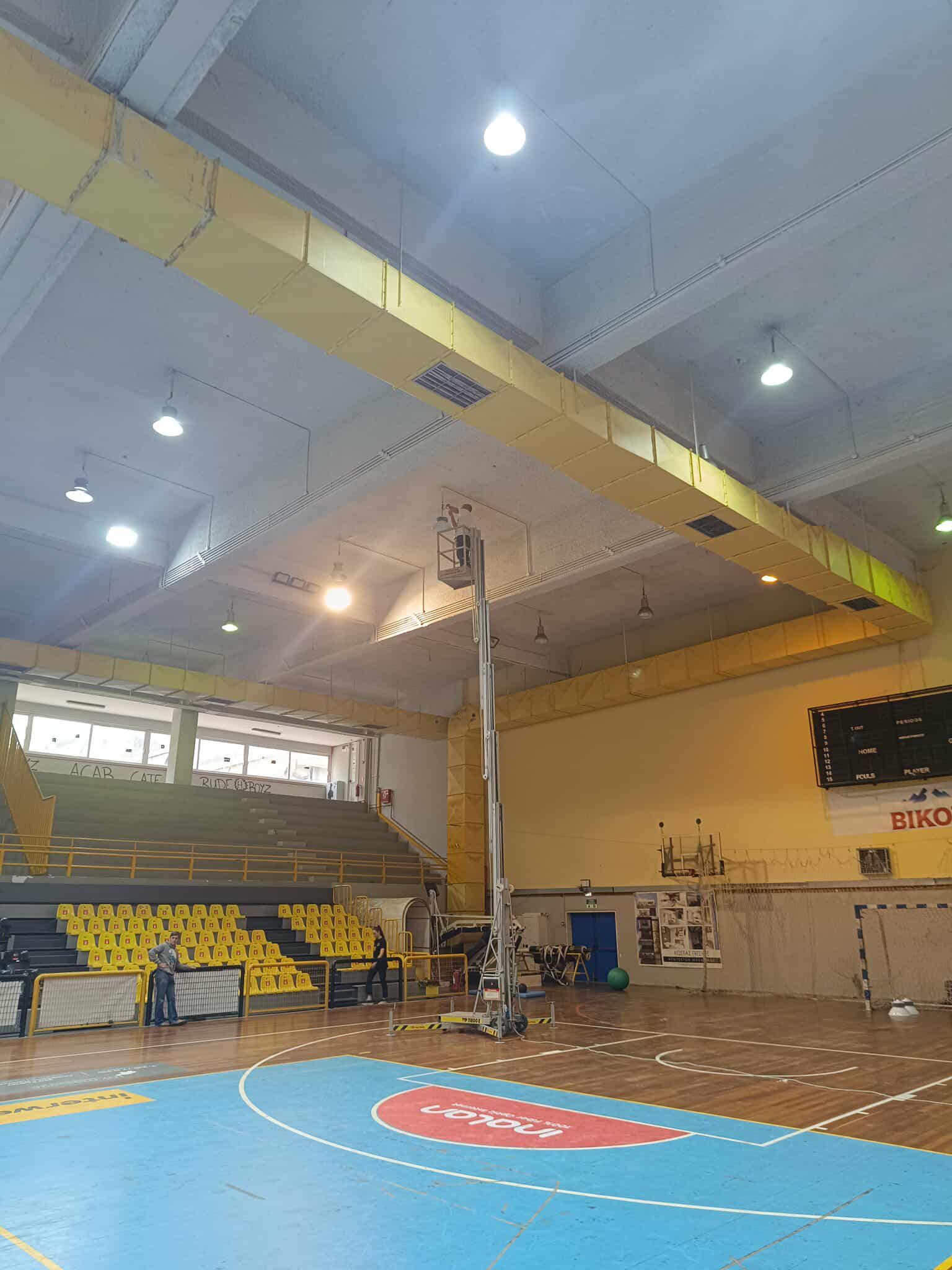 • Ολοκληρώνεται η αντικατάσταση των παλιών προβολέων οροφής με νέους φωτιστικούς τύπου LED, ενισχύοντας την ενεργειακή απόδοση και τον φωτισμό του χώρου.