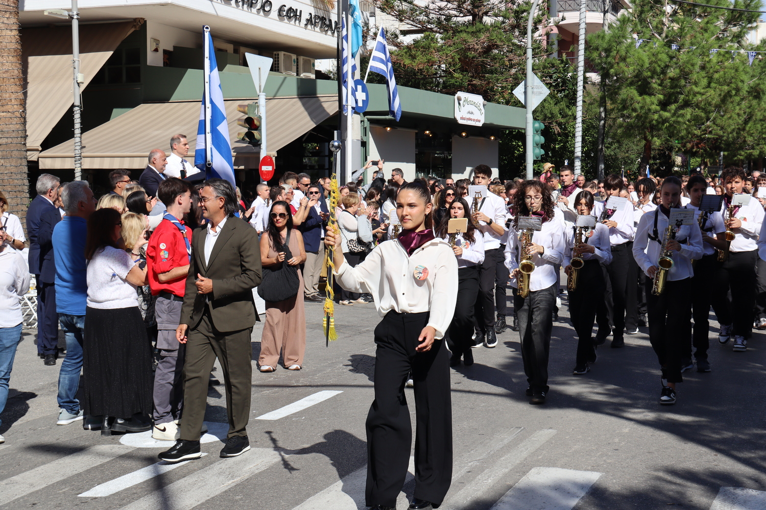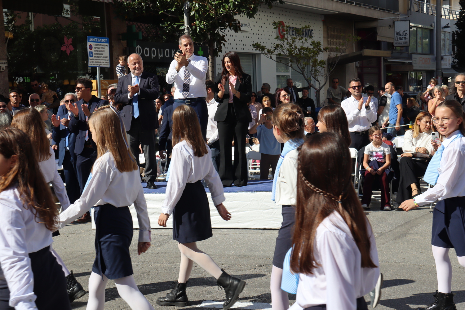 Ο κόσμος του Αλίμου, που είχε κατακλύσει τα πεζοδρόμια της Λεωφόρου Καλαμακίου, καταχειροκρότησε τους Συλλόγους και τα Σχολεία που παρέλασαν υπό τους ήχους της μπάντας του Μουσικού Σχολείου.