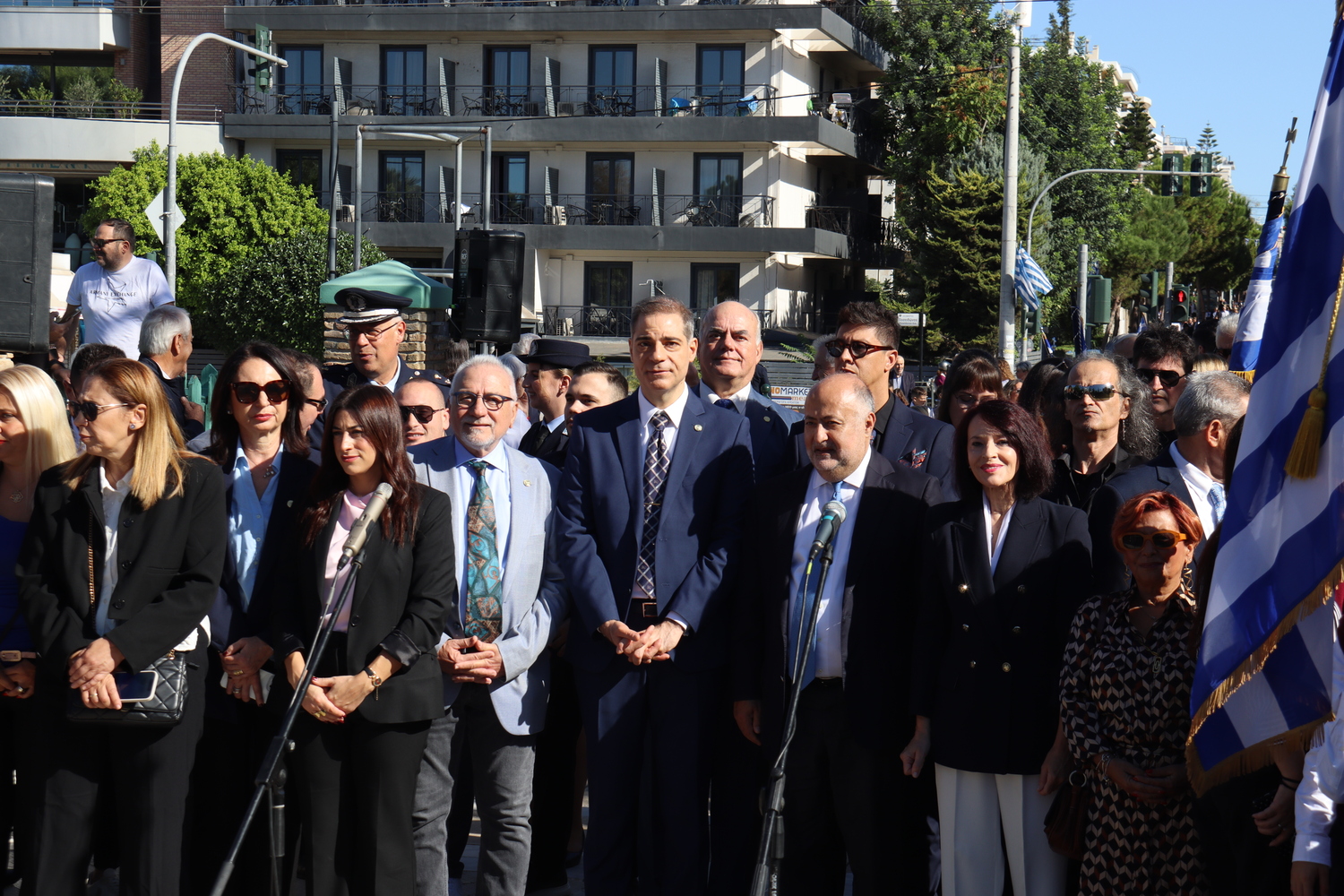 Στη συνέχεια, από την εξέδρα των επισήμων (Καλαμακίου και Θουκυδίδου) ο δήμαρχος απηύθυνε χαιρετισμό, ενώ τον πανηγυρικό της ημέρας εκφώνησε ο μαθητής του 1ου Λυκείου Αλίμου Κωνσταντίνος Παρασκευάς, ο οποίος τόνισε στο τέλος του λόγου του: «Δεν λησμονούμε το χρέος μας να θυμόμαστε, να μη ξεχνάμε. Η μνήμη είναι ρίζα. Κι αν η ρίζα δεν ποτίζεται με το δάκρυ της μνημοσύνης, μαραίνεται. Και τότε μαραίνονται και τα δροσερά φύλλα. Οι λαοί δεν πεθαίνουν από γηρατειά. Πεθαίνουν από την αγνωμοσύνη και τη λησμοσύνη. Πάντα ελεύθεροι! Χρόνια μας πολλά!»