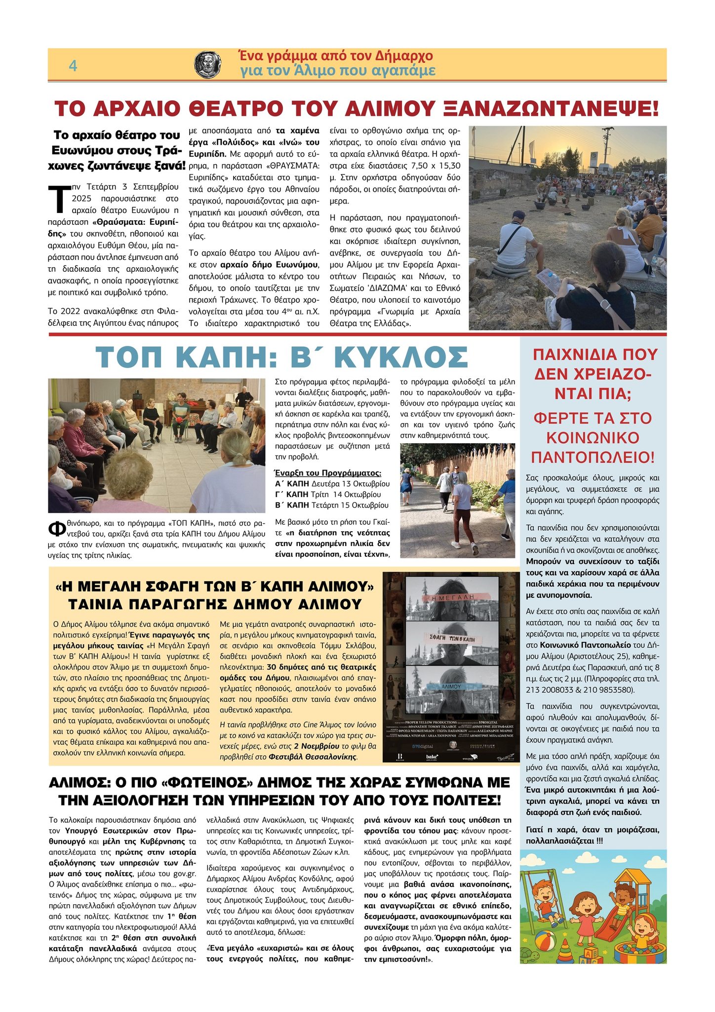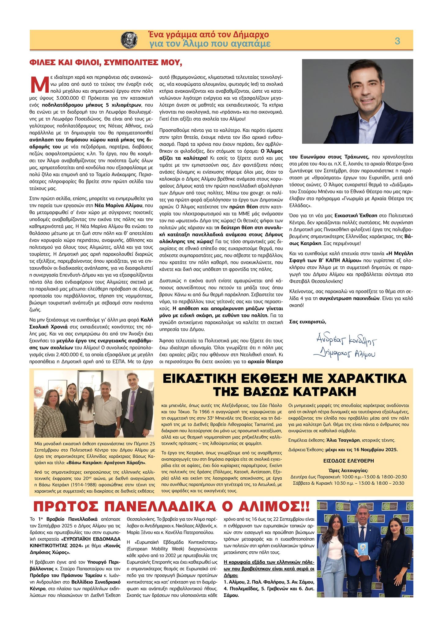 Κυκλοφορεί το νέο «Γράμμα από τον Δήμαρχο» Αλίμου, Ανδρέα Κονδύλη, η καθιερωμένη πλέον ανοιχτή επιστολή – ενημέρωση για τα τρέχοντα ζητήματα της πόλης.