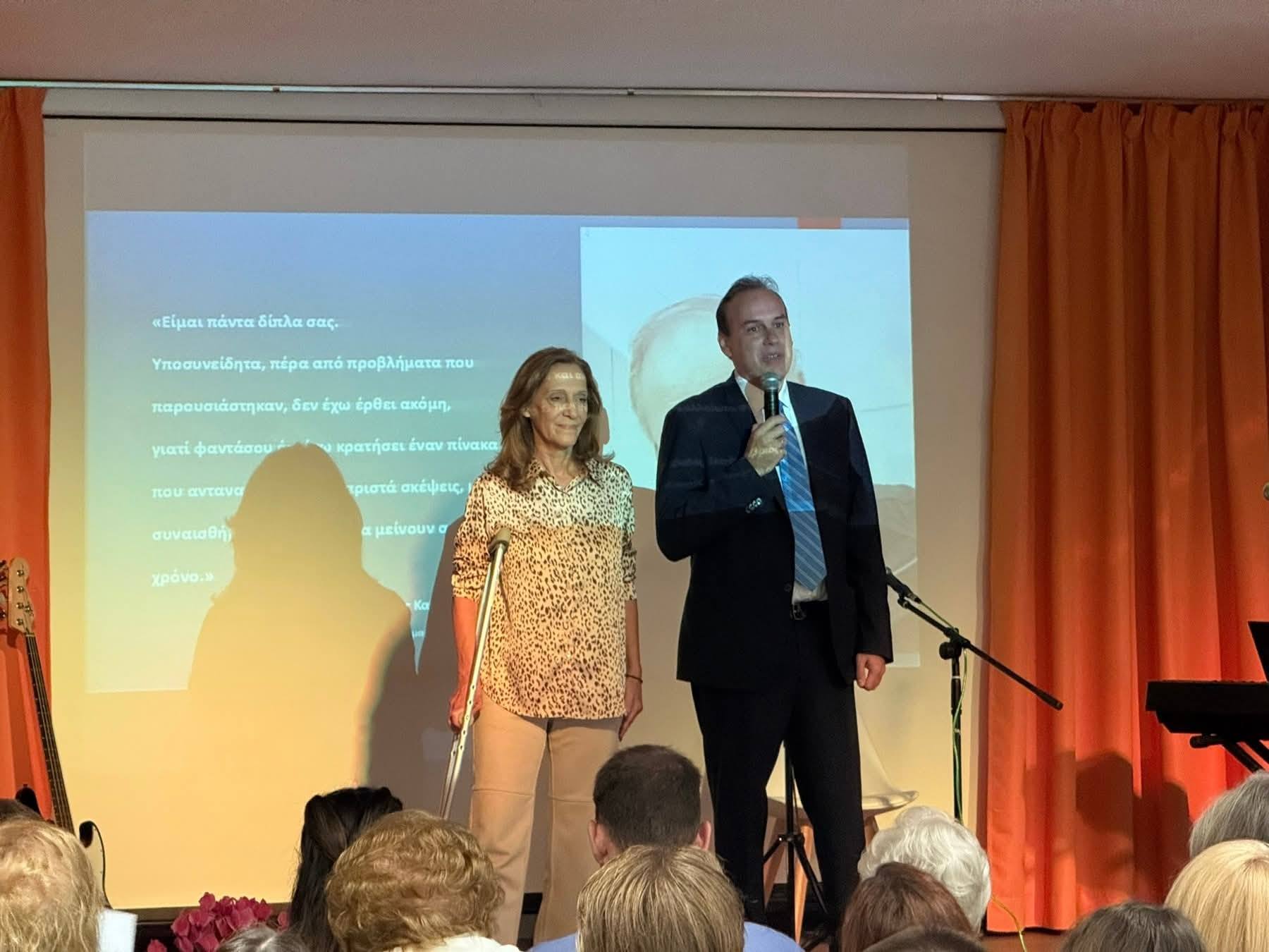 Σήμερα, παρουσία της αγαπημένης του οικογένειας, της συζύγου του Σεβαστής και του υιού του Δημήτρη, τιμήσαμε την τεράστια προσφορά του: Σε μια σεμνή τελετή, η πλήρως ανακατασκευασμένη αίθουσα εκδηλώσεων του 2ου Λυκείου πήρε τιμητικά το όνομά του. Ευχαριστώ από καρδιάς τον διευθυντή του 2ου Λυκείου κύριο Λάμπρο Κούτσικο για τον συντονισμό της σημερινής εκδήλωσης. Ευχαριστώ την αρμόδια αντιδήμαρχο Άννυ Καυκά για τον συντονισμό της συνολικής προσπάθειας για την ανακατασκευή της αίθουσας.
