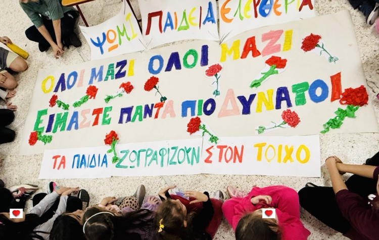 Ακολούθησε δραματοποίηση του παραμυθιού, με τη συμμετοχή των εκπαιδευτικών και των παιδιών, ενώ στη συνέχεια όλοι μαζί συνεργάστηκαν και δημιούργησαν ένα πανό με τα συνθήματα «”ΨΩΜΙ ΠΑΙΔΕΙΑ ΕΛΕΥΘΕΡΙΑ” ΟΛΟΙ ΜΑΖΙ ΟΛΟΙ ΜΑΖΙ ΕΙΜΑΣΤΕ ΠΑΝΤΑ ΠΙΟ ΔΥΝΑΤΟΙ».