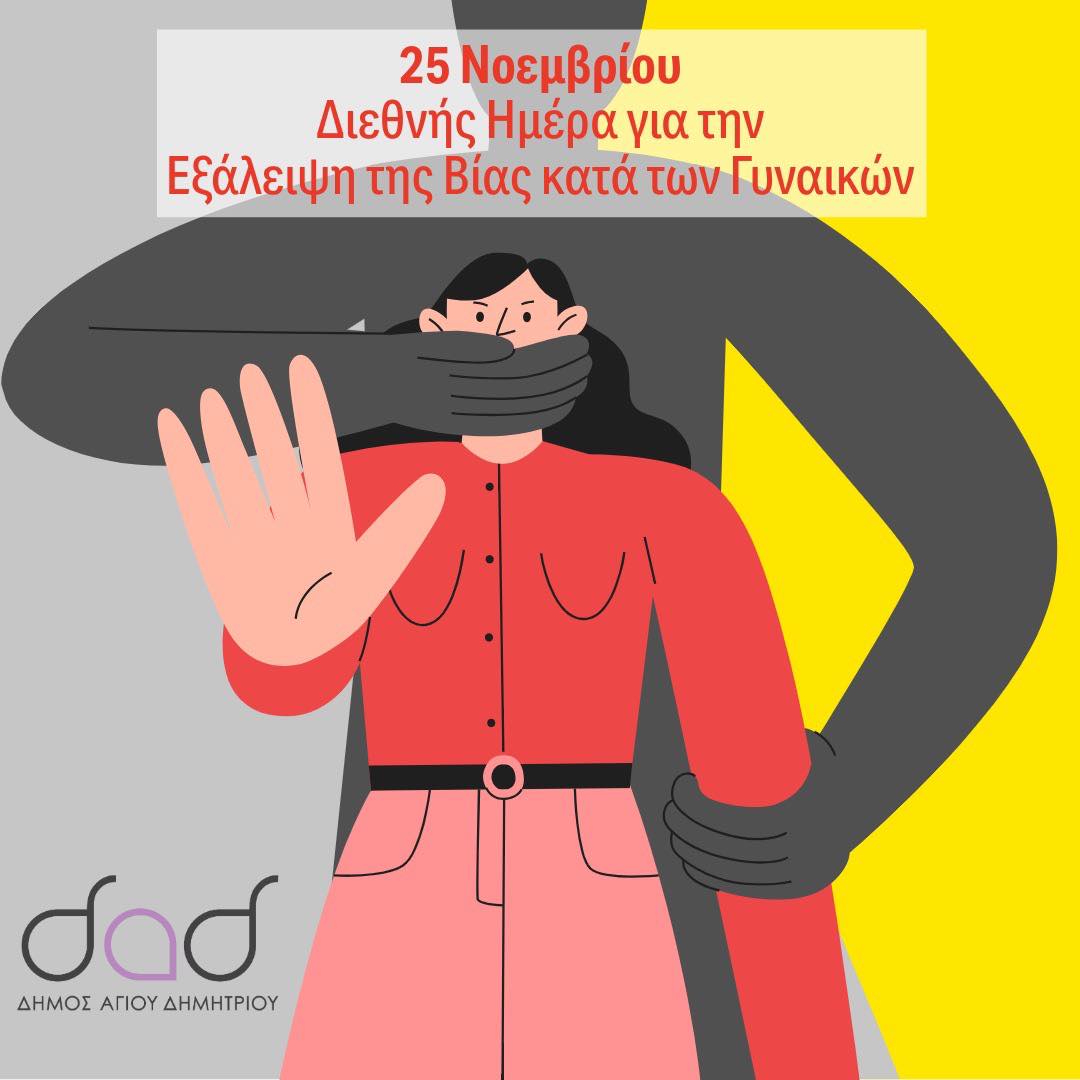 Με ποικίλες και πολύπλευρες δράσεις τιμά ο Δήμος Αγίου Δημητρίου την Παγκόσμια Ημέρα για την Εξάλειψη της Βίας κατά των Γυναικών.