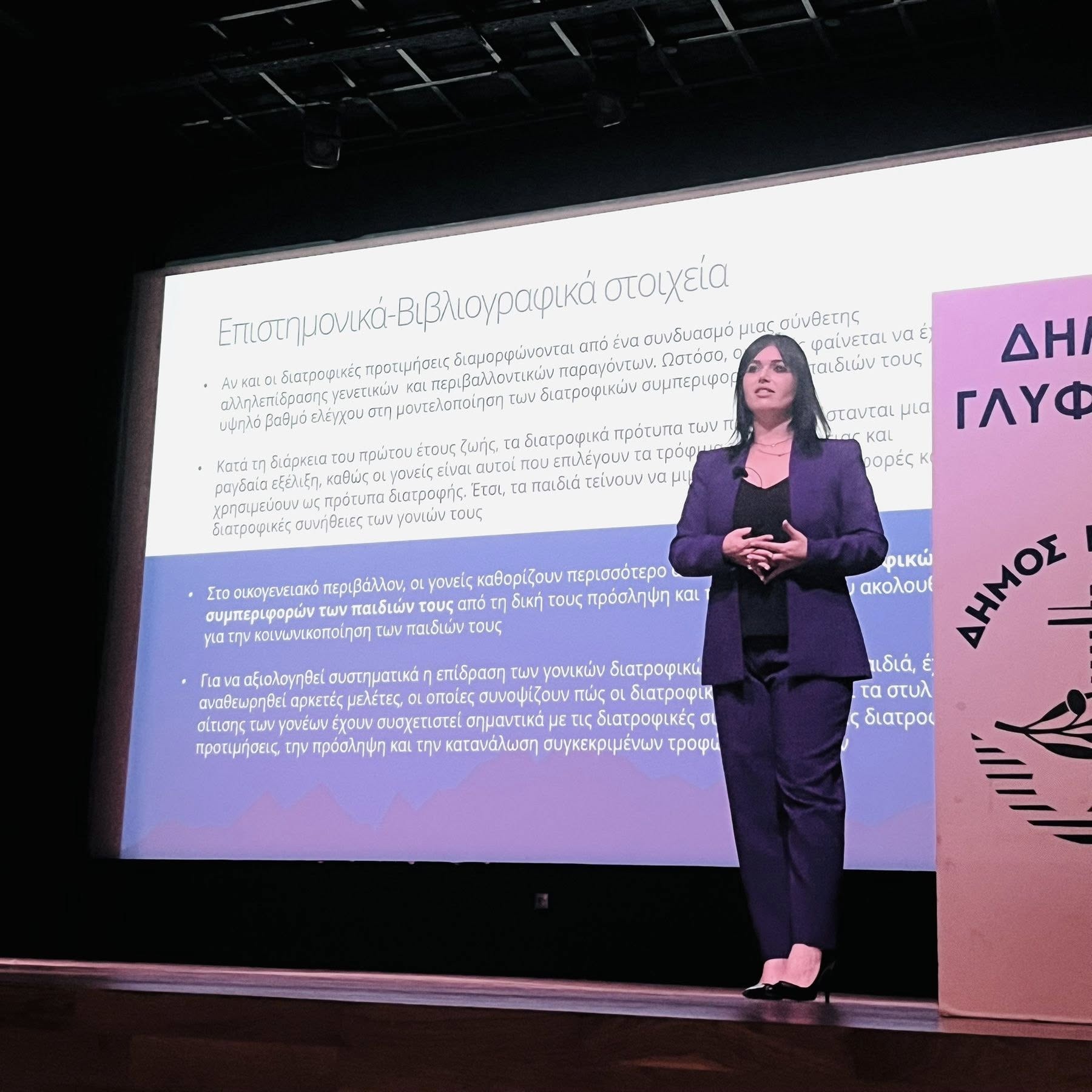 Στο πολυπληθές ακροατήριο του Δημοτικού Κινηματοθεάτρου «Μ. Μερκούρη» πραγματοποιήθηκε τη Δευτέρα 24 Νοεμβρίου η ομιλία της κ. Εύας Ζήκου, διαιτολόγου – διατροφολόγου και διδάκτωρ Ιατρικής Σχολής Εθνικού και Καποδιστριακού Πανεπιστημίου Αθηνών, με θέμα: «Διατροφή γονιών – Διατροφή παιδιών: Πώς η υιοθέτηση ενός υγιούς τρόπου διατροφής των γονιών βελτιώνει τη διατροφική συμπεριφορά των παιδιών».