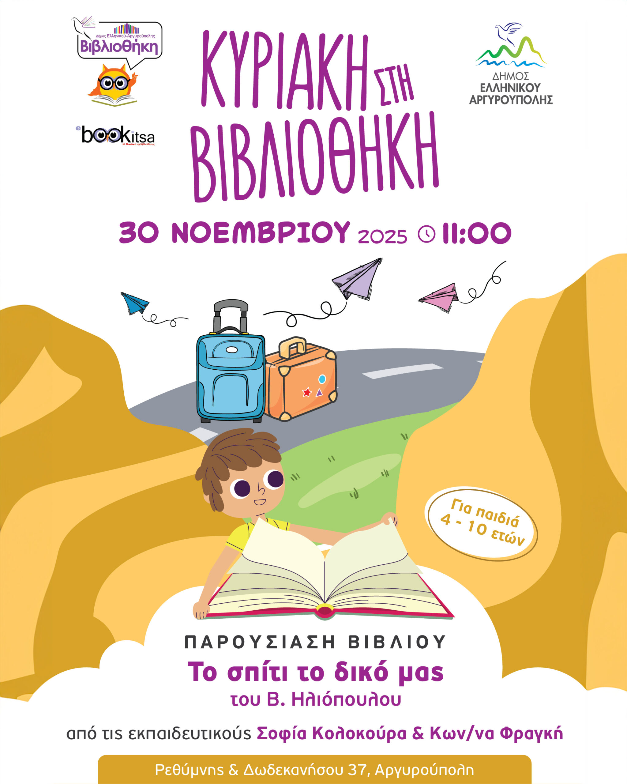 Συνεχίζεται η δράση «Κυριακή στη Βιβλιοθήκη», του Δήμου Ελληνικού – Αργυρούπολης, που έχει ως στόχο να φέρει τα παιδιά της πόλης κοντά στον κόσμο των βιβλίων, μέσα από δημιουργικές αφηγήσεις και διαδραστικές παρουσιάσεις.