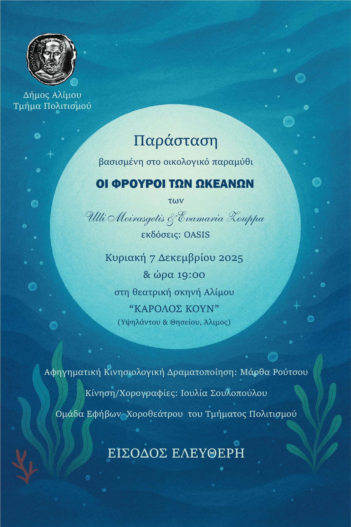 «Οι Φρουροί των Ωκεανών» – Δωρεάν παράσταση από τον Δήμου Αλίμου