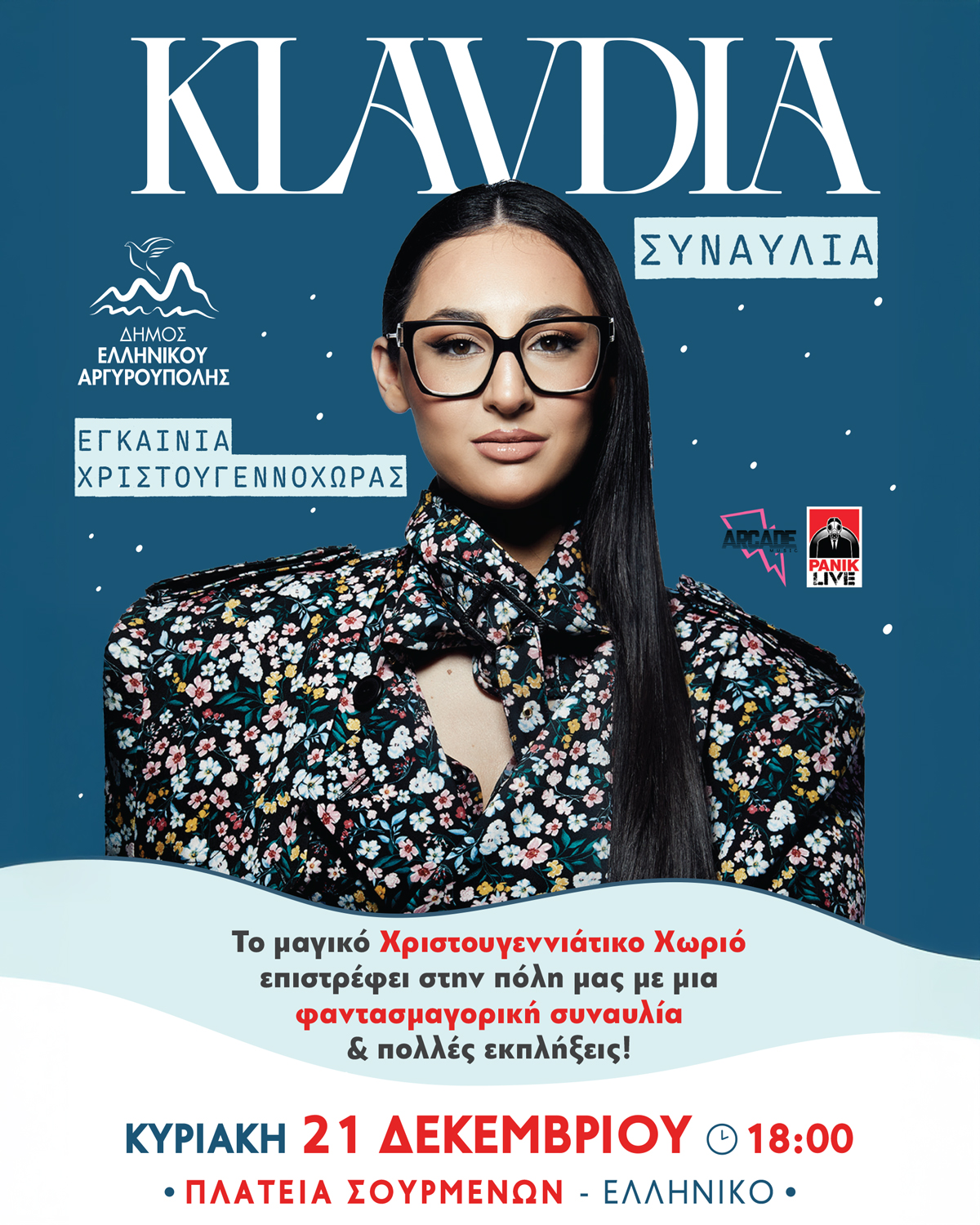 Αυτή την Κυριακή 21 Δεκεμβρίου, στις 6.00 το απόγευμα στην Πλατεία Σουρμένων, θα λάβουν χώρα τα εγκαίνια της «Χριστουγεννοχώρας» μαζί με μία συναυλία της αγαπημένης στο ελληνικό κοινό Κλαυδίας.