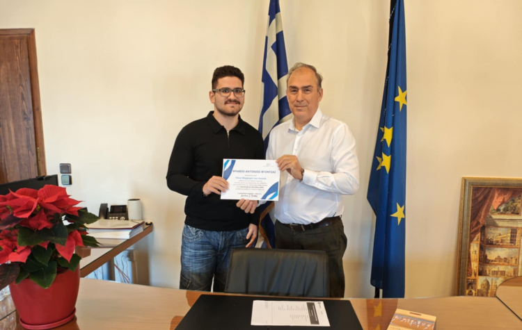 Σε κλίμα συγκίνησης και υπερηφάνειας πραγματοποιήθηκε το Σάββατο 13 Δεκεμβρίου, στο πρώην Δημαρχείο Υμηττού, η απονομή του βραβείου αριστείας «Αντώνη Βγόντζα» στον μαθητή της πόλης που πέτυχε την υψηλότερη βαθμολογία στις Πανελλαδικές Εξετάσεις για το σχολικό έτος 2024–2025, από τον δήμαρχο Δάφνης–Υμηττού, Νικόλαο Τσιλίφη