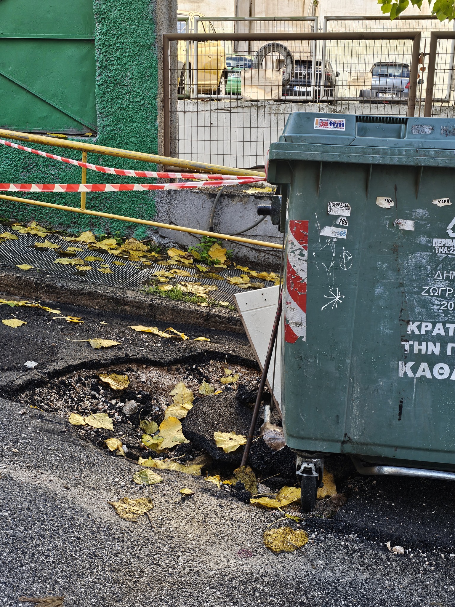 Καθίζηση έχει σημειωθεί σε σημείο του οδοστρώματος, όπου υπήρχε μπάλωμα, επί της οδού Πιερράκου, έξω από το πάρκινγκ του Δήμου Ζωγράφου.