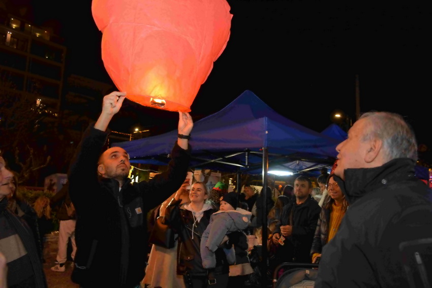 Μικροί και μεγάλοι συμμετείχαν με ενθουσιασμό δημιουργώντας μια ζεστή, χριστουγεννιάτικη ατμόσφαιρα και τα φαναράκια μετέφεραν ψηλά τις ευχές με μηνύματα αγάπης από όλους.