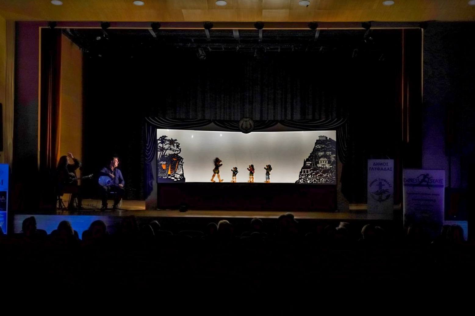 Ο ηθοποιός Τάκης Βαμβακίδης ζωντάνεψε επί σκηνής τον Καραγκιόζη, ενώ τη μουσική επιμέλεια είχαν η Ελένη Φάρου στο τραγούδι και την κιθάρα και ο Θοδωρής Τζινέλλης στο μπουζούκι.