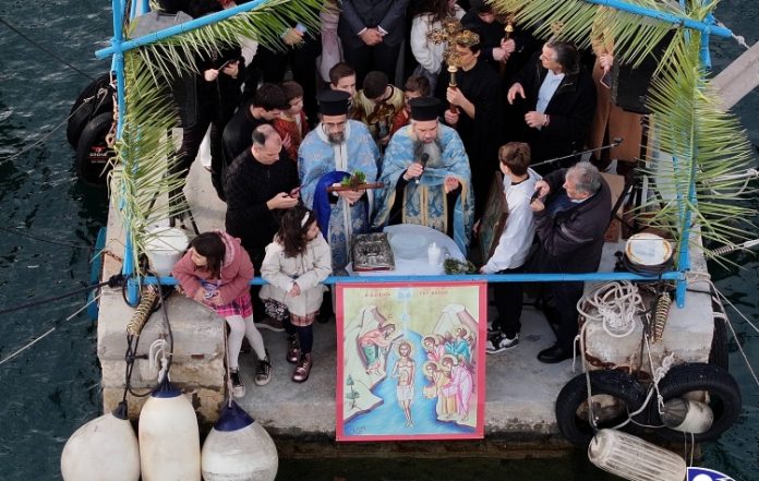 Με την παρουσία εκατοντάδων πιστών εορτάστηκε και φέτος ο αγιασμός των υδάτων στον Ναυτικό Όμιλο Καλαμακίου.