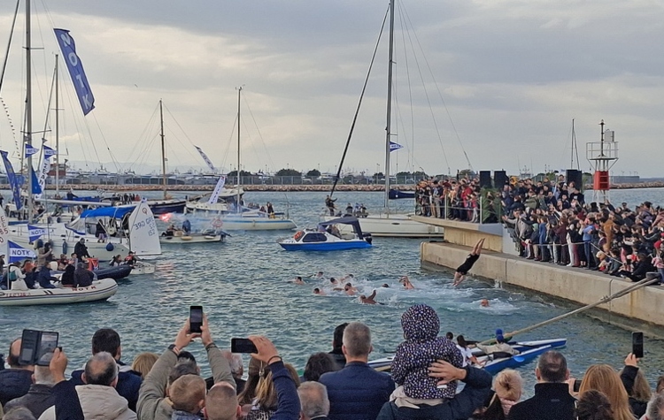Στην κορύφωση της τελετής, πιστοί κάθε ηλικίας βούτηξαν στα νερά για την ανάσυρση του Τιμίου Σταυρού.
