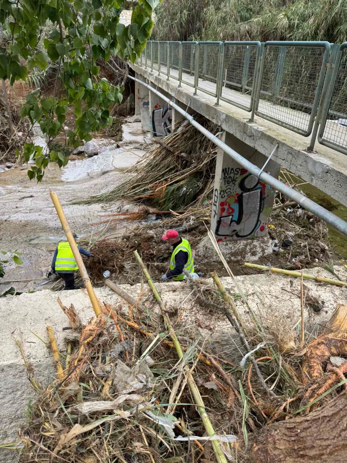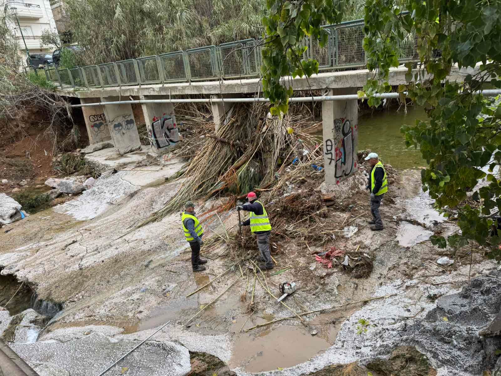 Απομακρύνθηκαν μεγάλες ποσότητες κλαδιών κ.ά. υλικών, ώστε το ρέμα να είναι ξανά ανοιχτό και λειτουργικό.