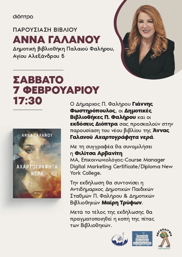 Την εκδήλωση θα ανοίξει η παρουσίαση του νέου βιβλίου της Άννας Γαλανού «Αχαρτογράφητα νερά» και κατόπιν θα ακολουθήσει η κοπή της πρωτοχρονιάτικης πίτας.