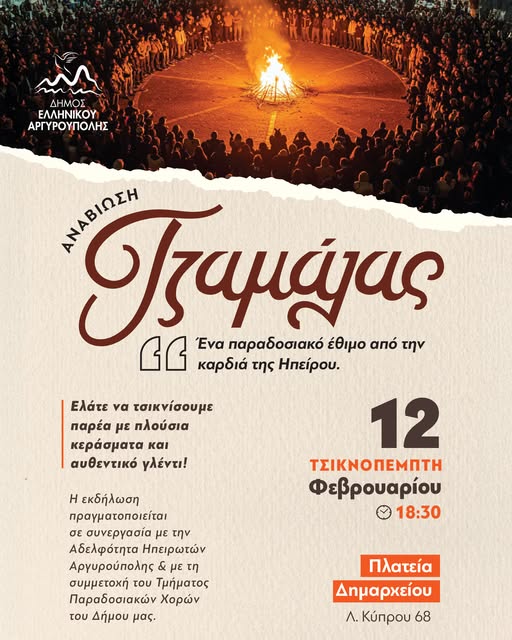 Η εκδήλωση πραγματοποιείται σε συνεργασία με την Αδελφότητα Ηπειρωτών Αργυρούπολης και με τη συμμετοχή του Τμήματος Παραδοσιακών Χορών του Δήμου.