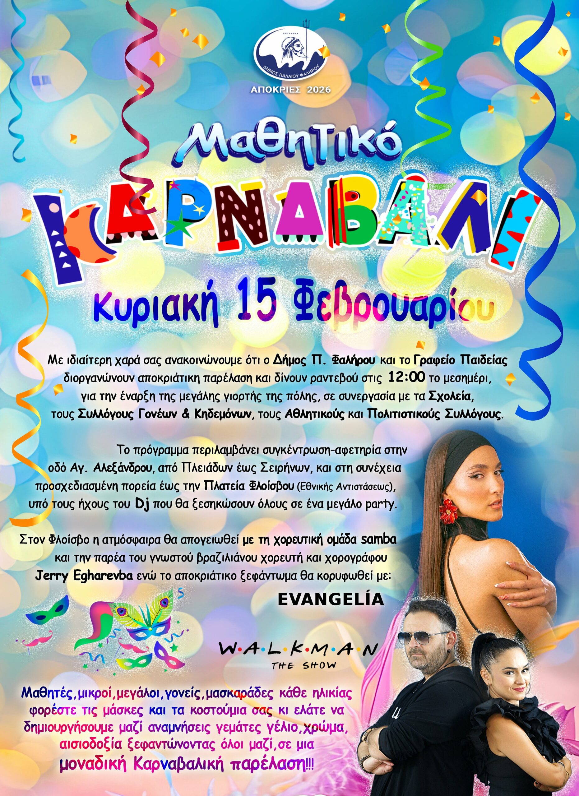 Το Μαθητικό Καρναβάλι 2026 στο Παλαιό Φάληρο είναι προ των πυλών.