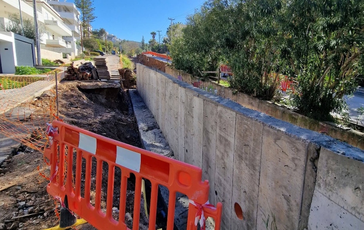 Επιπλέον, το έργο προχωρά πλέον στη δεύτερη φάση, με τη διαμόρφωση και ενίσχυση των πρανών μέσω κατασκευής πλευρικών τοιχωμάτων, ώστε να διασφαλιστεί η σταθερότητα του εδάφους και η προστασία των παρακείμενων κατοικιών.