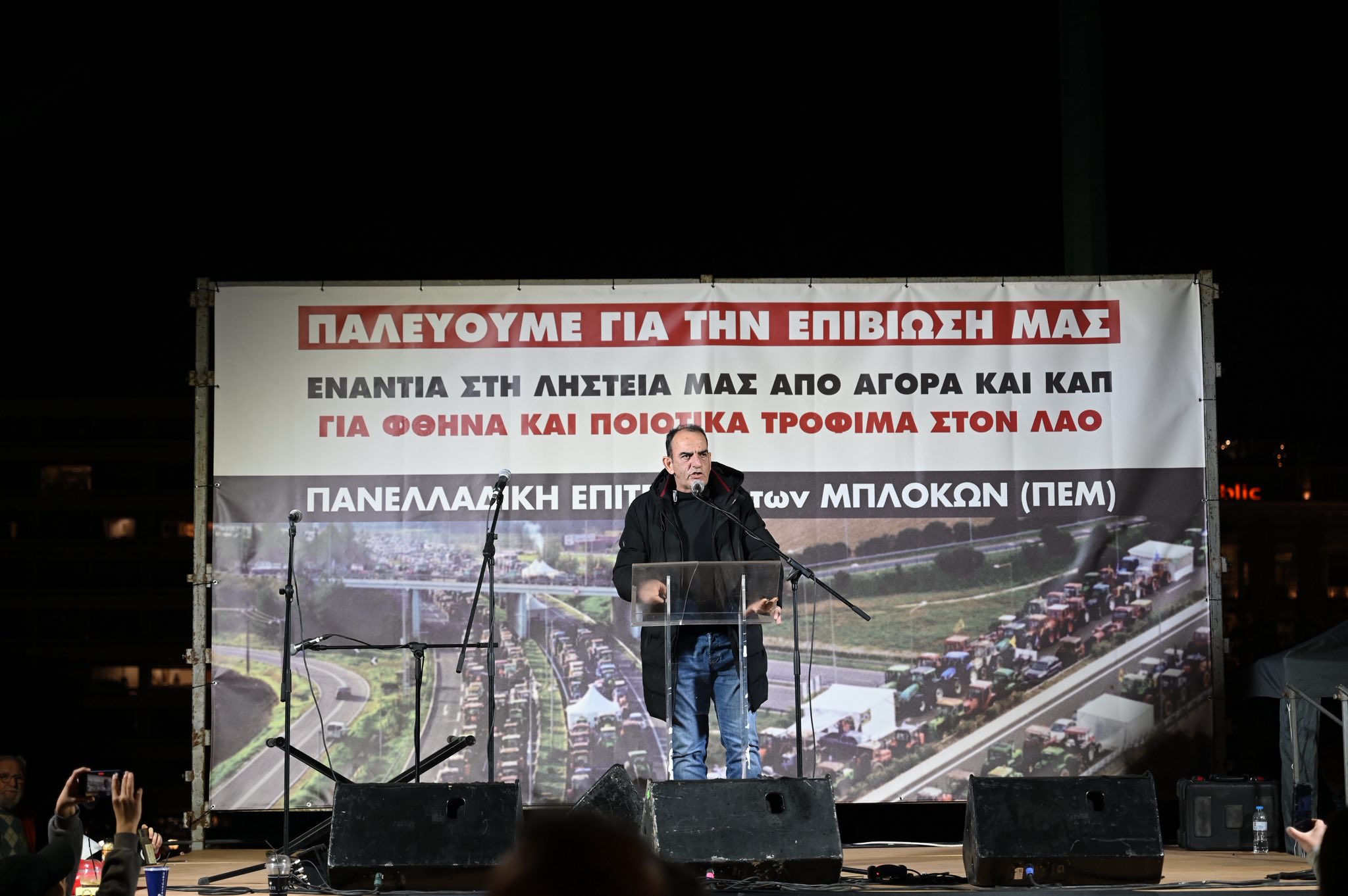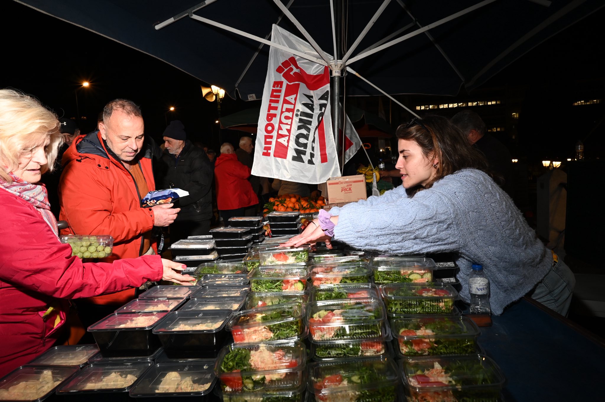 Παράλληλα, η Ομοσπονδία αλλά και άλλοι φορείς, όπως η Επιτροπή Αγώνα Λαϊκών Αγορών, έστησαν πάγκους προσφέροντας νερά, χυμούς, σάντουιτς και άλλα είδη πρώτης ανάγκης, στηρίζοντας την προσπάθεια για τη σημερινή διανυκτέρευση έξω από τη Βουλή.