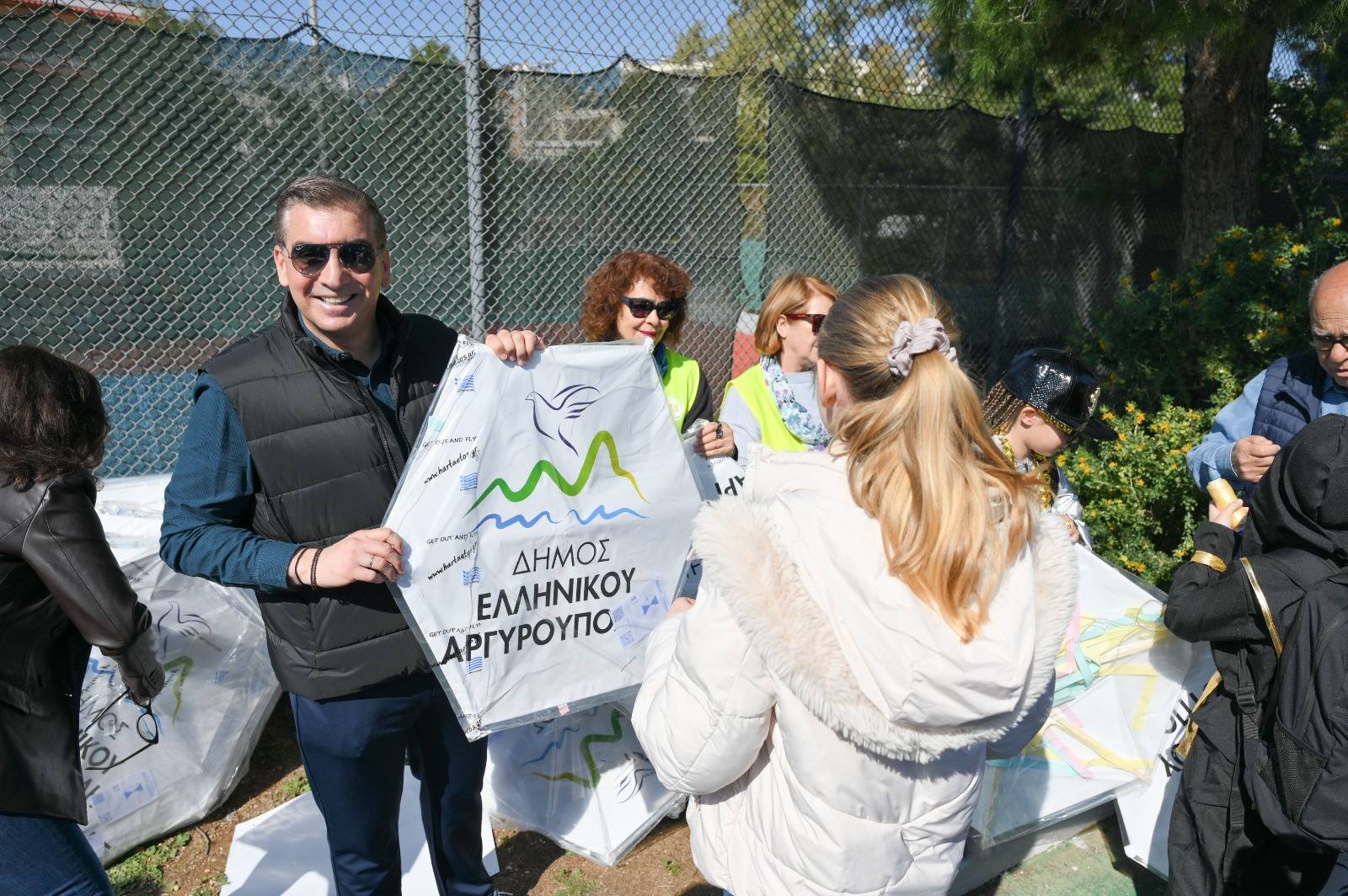Ο δήμαρχος Γιάννης Κωνσταντάτος διασκέδασε μαζί με τους χιλιάδες παρευρισκόμενους που ανέβηκαν στο βουνό, μοιράζοντας δωρεάν χαρταετούς στους μικρούς δημότες.