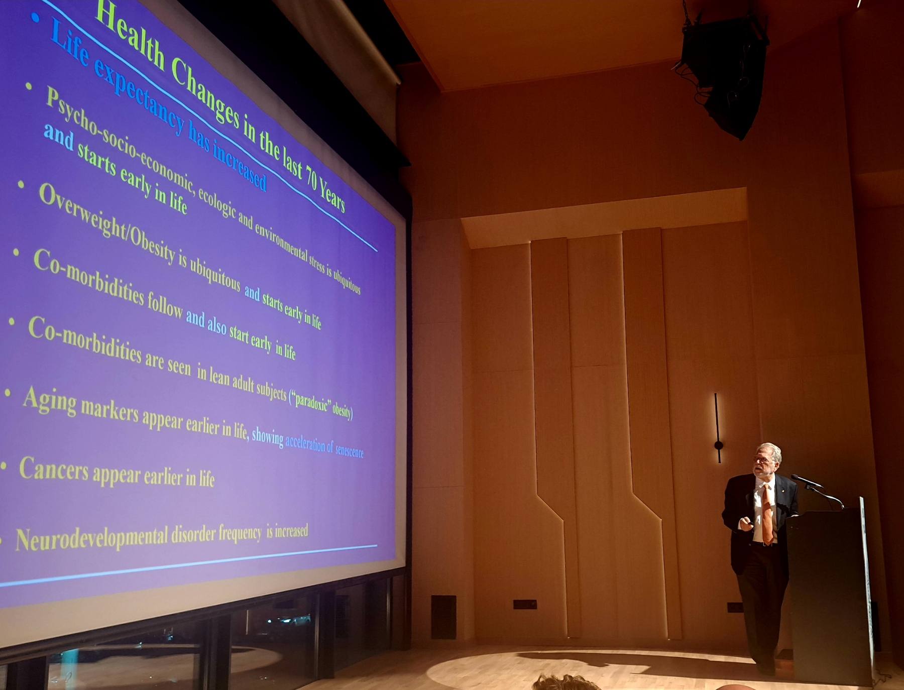 Ο ομιλητής ανέπτυξε με επιστημονική πληρότητα και σαφήνεια τους ενδοκρινικούς και μοριακούς μηχανισμούς του στρες, αναδεικνύοντας τον καθοριστικό ρόλο του στην υγεία και τη διάρκεια της ζωής.