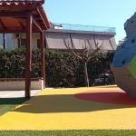 Στο πλαίσιο των παρεμβάσεων, αντικαταστάθηκε το παλαιό βοτσαλωτό δάπεδο με σύγχρονο χυτό ελαστικό τάπητα, υλικό που πληροί όλες τις προβλεπόμενες προδιαγραφές ασφαλείας και προσφέρει μεγαλύτερη προστασία στα παιδιά κατά το παιχνίδι.