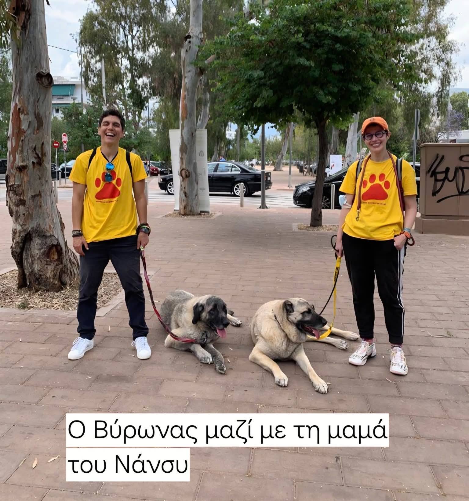«Ο Βύρωνας που μαζέψαμε τέρμα άρρωστο ετοιμοθάνατο από τον @@@@ στο βουνό μαζί με τη Νάνσυ και άλλα τρία κουτάβια σε άθλια κατάσταση. Ήταν δεμένος σε δέντρο μέχρι να ξεψυχήσει. Έστειλε κάποιος φωτογραφία-ενημέρωση στον Δήμαρχό μας, τα μαζέψαμε, τα φροντίσαμε και κάποια υπέροχη μέρα, υιοθετήθηκαν. Όταν ο Βύρωνας έγινε ο τέλειος σκύλος -που ήταν πάντα- τον υιοθέτησε ο σκηνοθέτης Γιώργος Λάνθιμος.