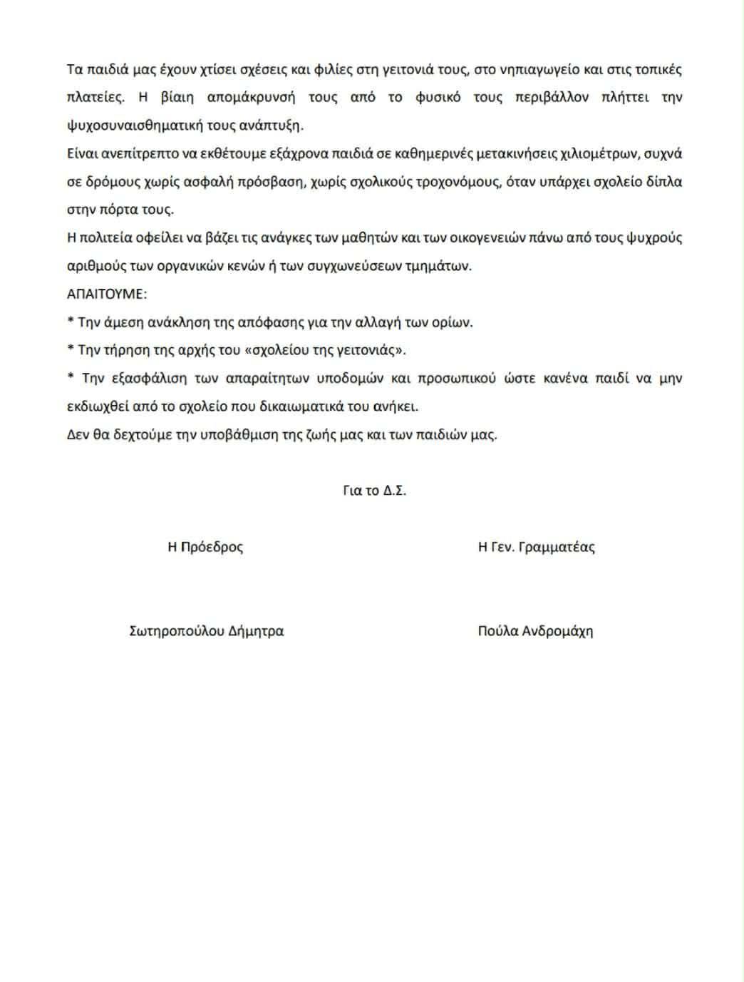 Οι γονείς δηλώνουν ανυποχώρητοι, απαιτώντας την άμεση ανάκληση της απόφασης και την τήρηση της αρχής του «σχολείου της γειτονιάς».
