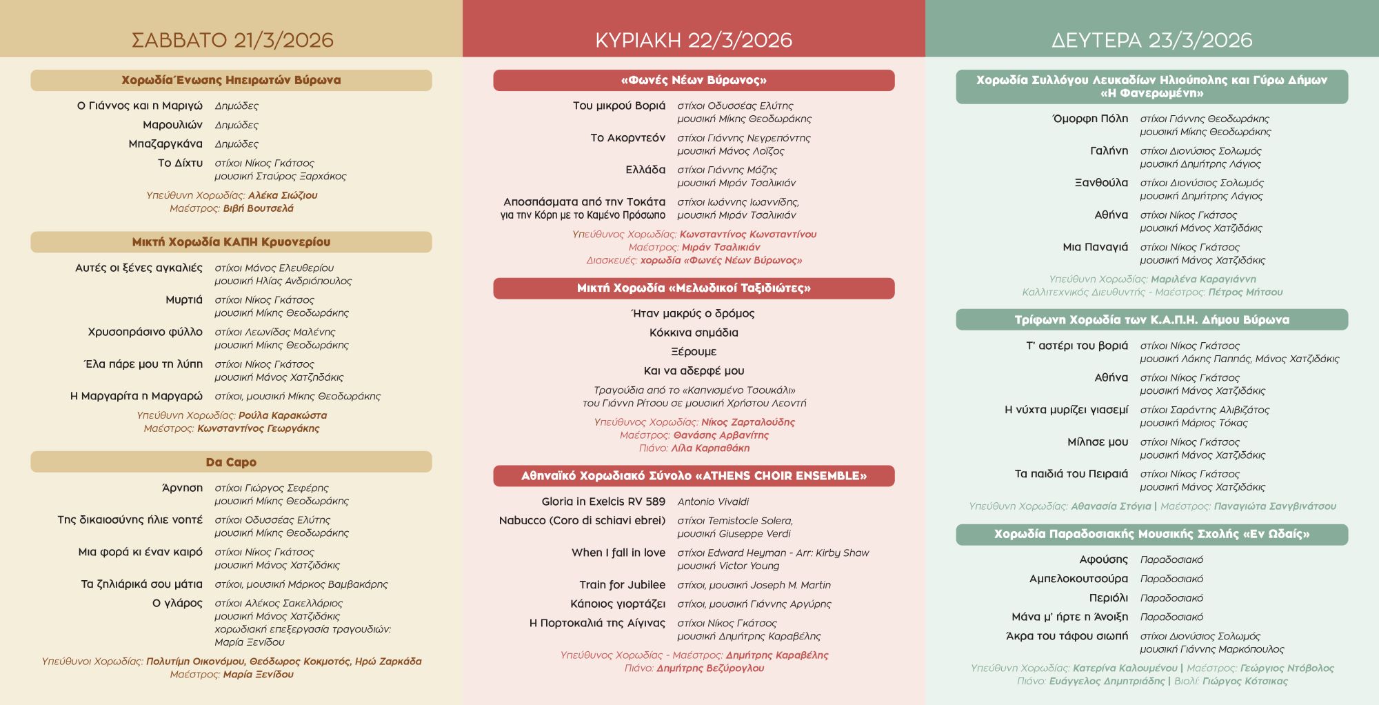 Το 2ο Φεστιβάλ Χορωδιών θα λάβει χώρα το Σάββατο 21, Κυριακή 22 & Δευτέρα 23 Μαρτίου 2026 και ώρα 19:00, στον Δημοτικό Κινηματογράφο «Νέα Ελβετία», με ελεύθερη είσοδο.