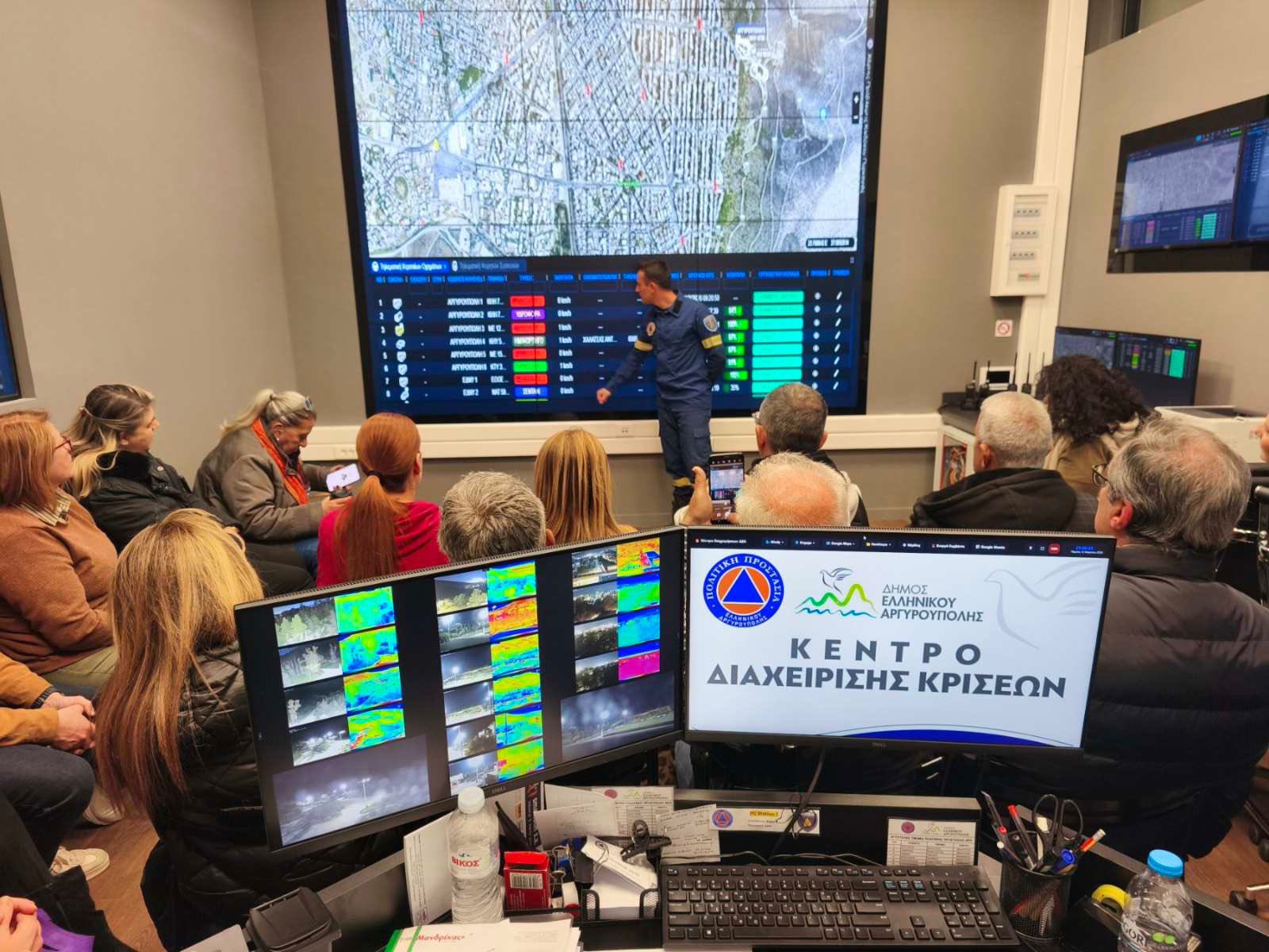 Τελευταίος σταθμός των επισκέψεων ήταν το Κέντρο Διαχείρισης Κρίσεων του Δήμου, όπου τα μέλη της παράταξης ενημερώθηκαν αναλυτικά για τη λειτουργία και τον ρόλο της δομής από τον αρμόδιο αντιδήμαρχο, υπηρεσιακά στελέχη και εθελοντές της Πολιτικής Προστασίας.